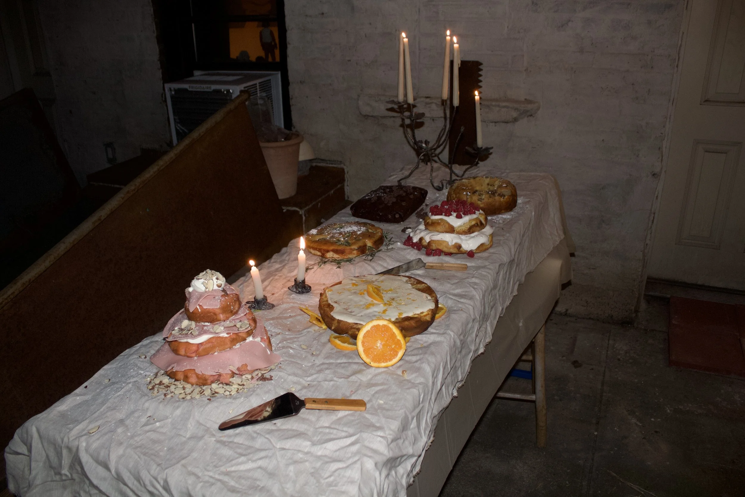 These works center the body as both participant and witness to cycles of decay and rebirth. Reimagining traditional feminine labors as performance through acts of baking, serving, and waiting. Food becomes a living material and is communally consumed, then left to transform. These pieces examine how nourishment, from the macro to microbial, mirror the generational cycles of womanhood itself. Each piece unfolds as a ritual, tracing the invisible exchanges we experience throughout generations and time with the offerings of a shared meal.